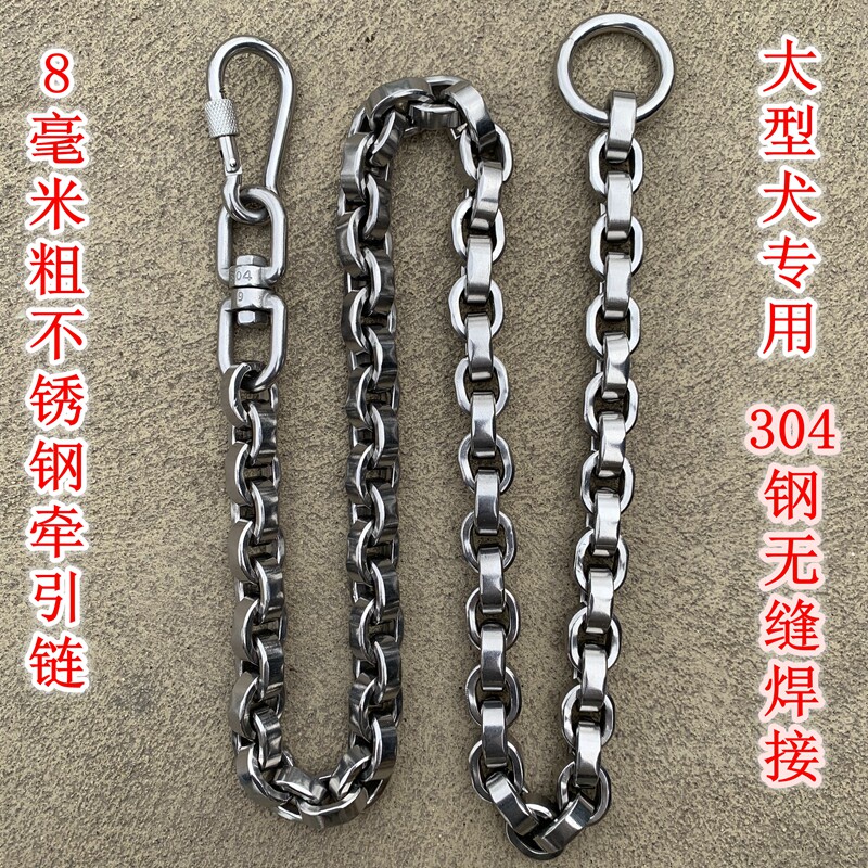 8毫米平面大型犬牵引比特杜高罗威纳卡斯罗不锈钢拴狗绳遛狗链子