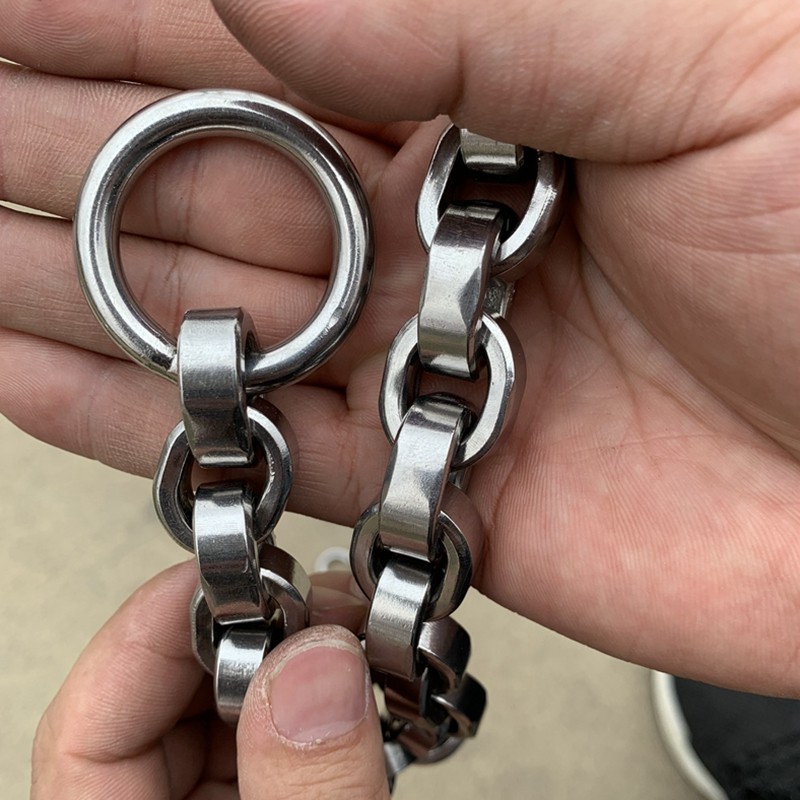不锈钢加密加粗精致恶霸杜宾卡斯罗狗头结实古巴链14mm宽牵引绳