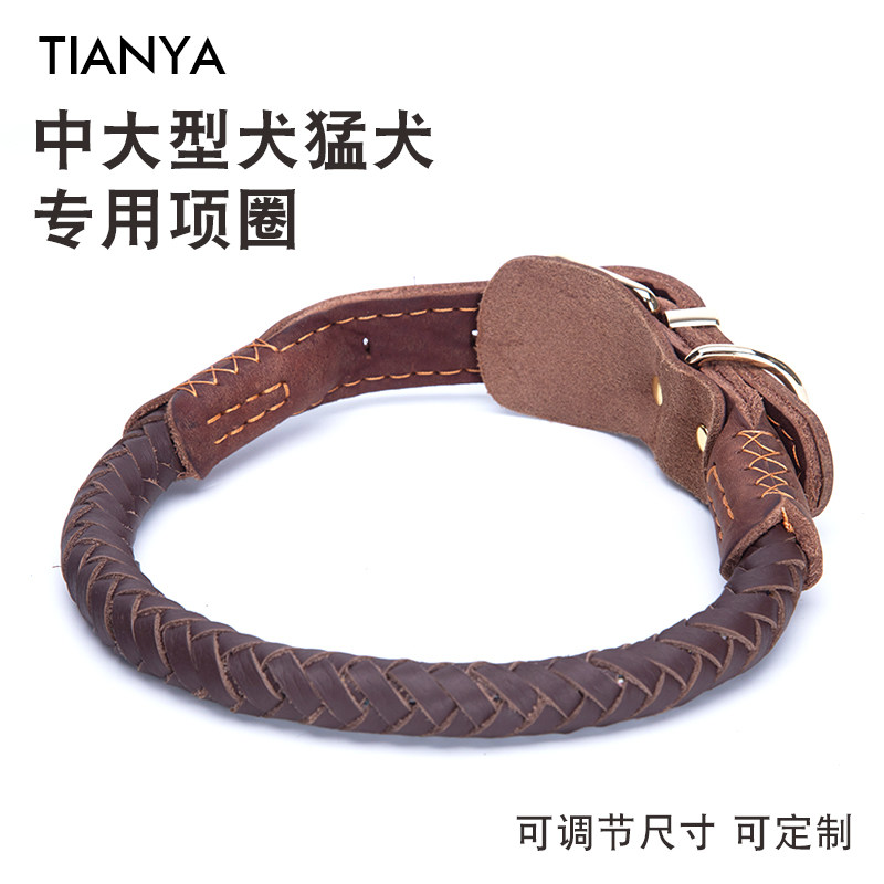 狗项圈牛皮中型大型犬猛犬卡斯罗编织可调节金毛栓狗防脱牵引遛狗