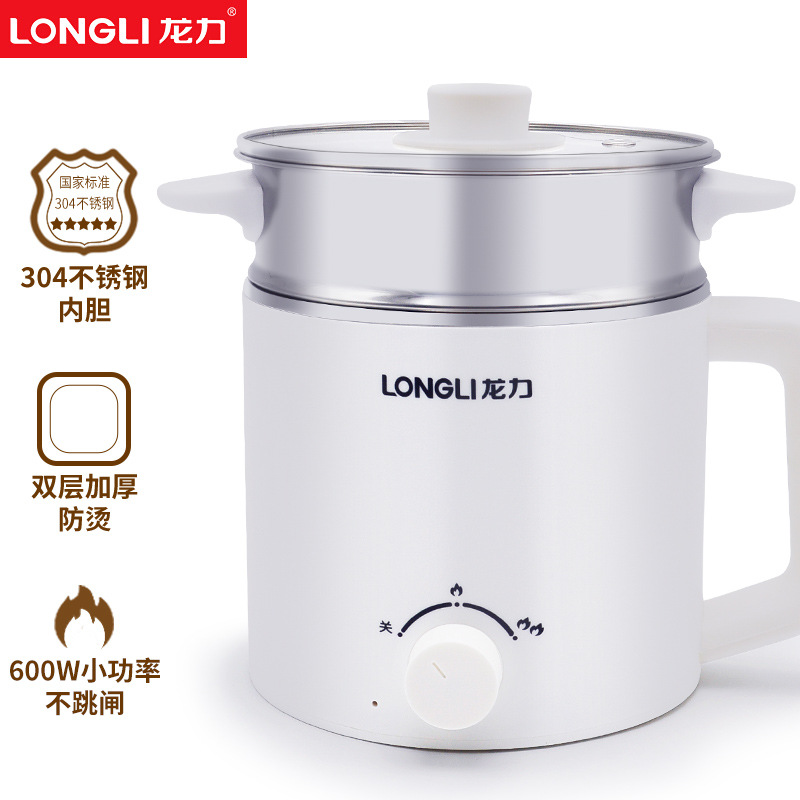 龙力电煮锅迷你电锅多功能家用小功率电煮锅304不锈钢宿舍电热锅
