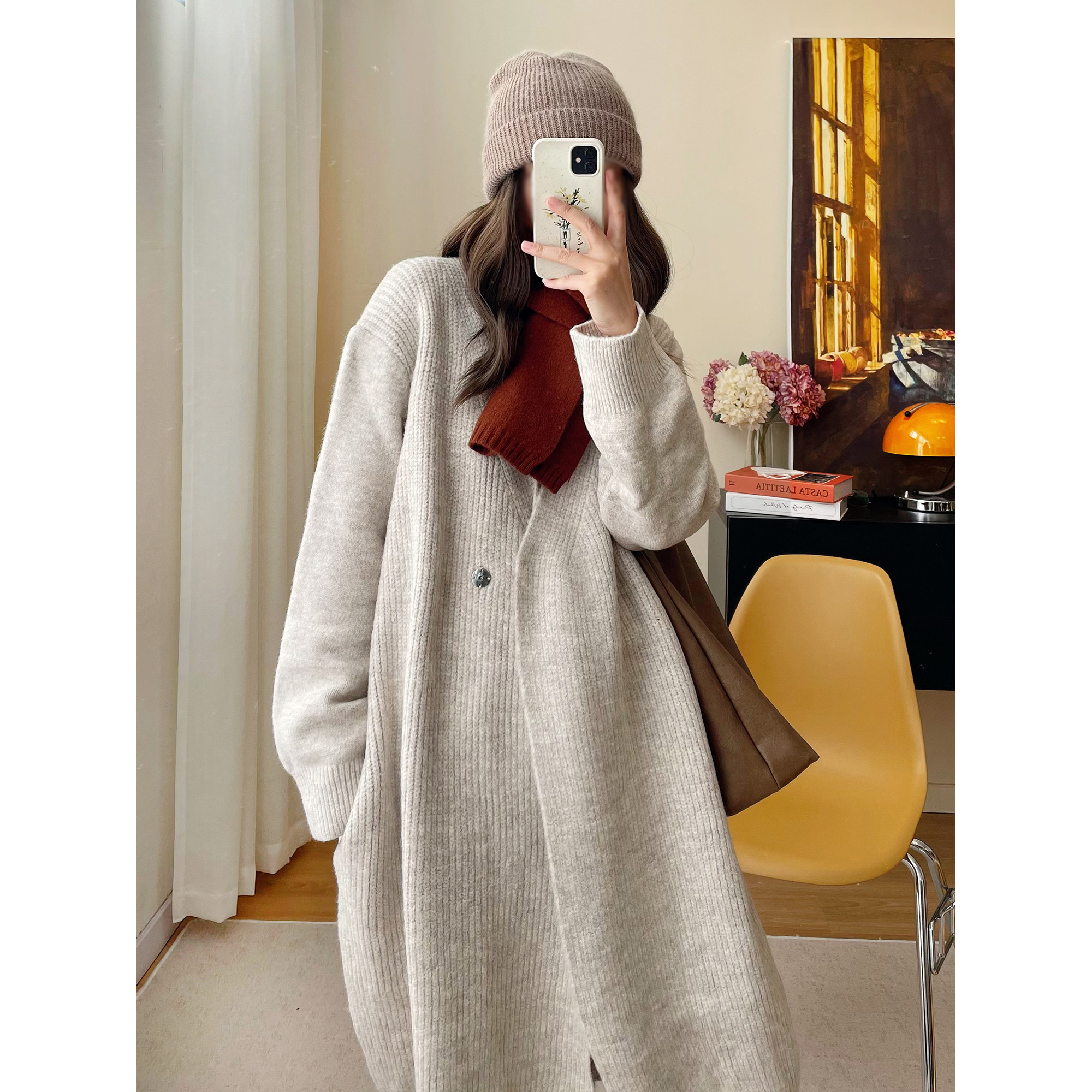 - 春季中长款毛衣开衫女