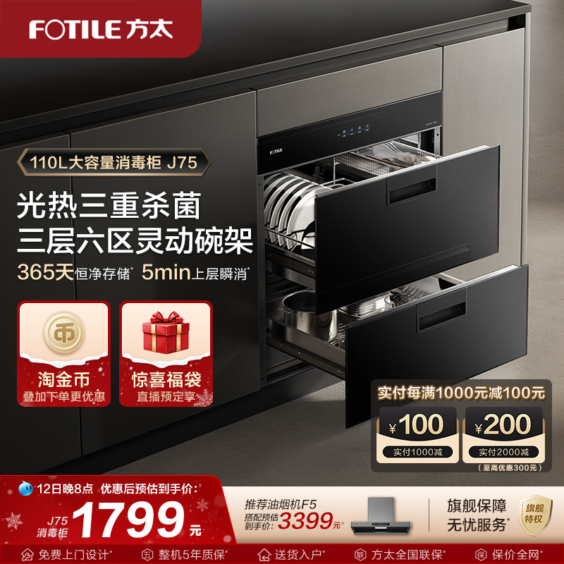 方太J75消毒柜110L烘干一体嵌入式碗柜厨房母婴级家用多功能内嵌