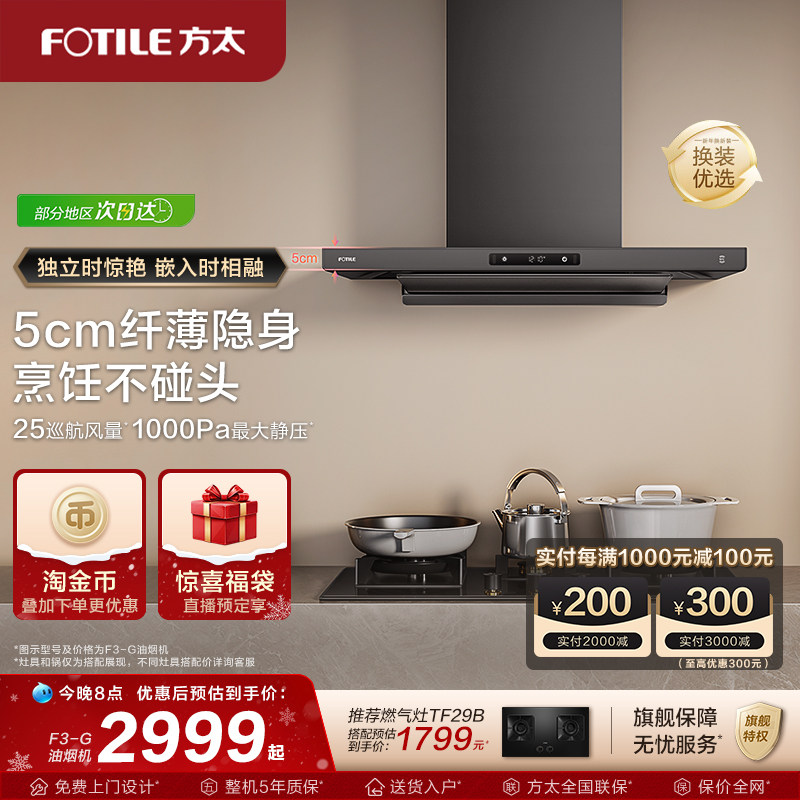 【新品】方太纤薄F3S欧式变频吸抽油烟机厨房家用方太官方旗舰店