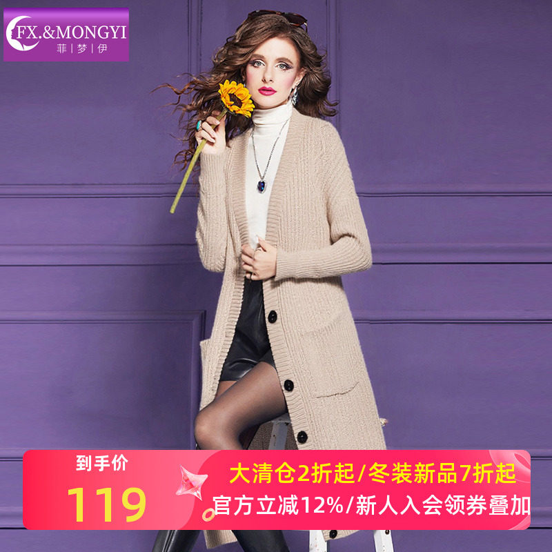 菲梦伊含羊毛针织毛衣开衫外套女秋装基础款慵懒风宽松中长款大衣