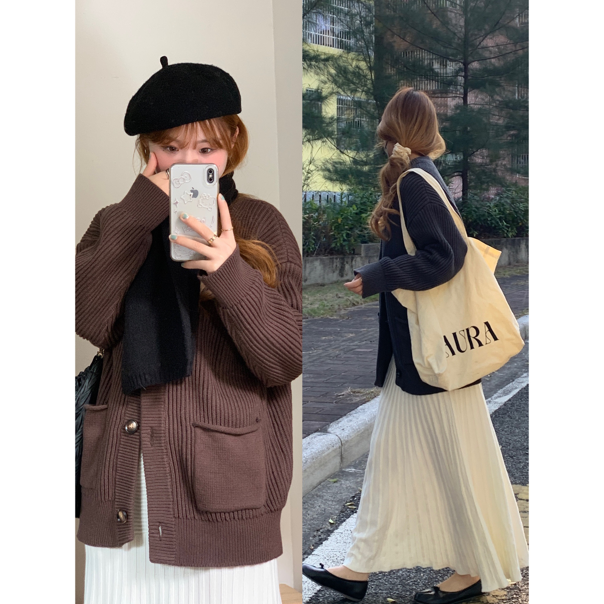 毛衣开衫外套女中长款慵懒风宽松外穿春秋冬小个子复古针织衫上衣