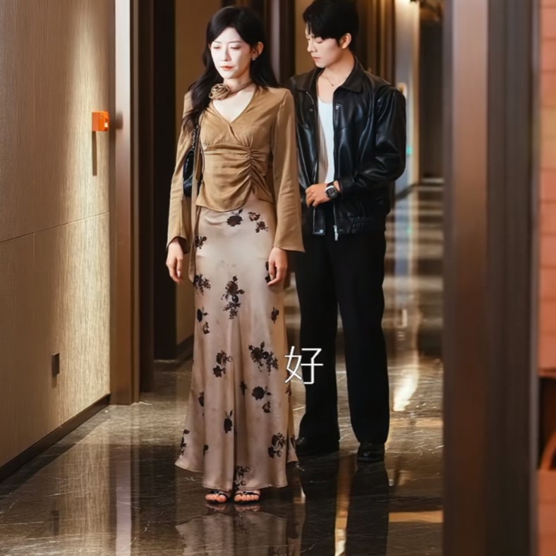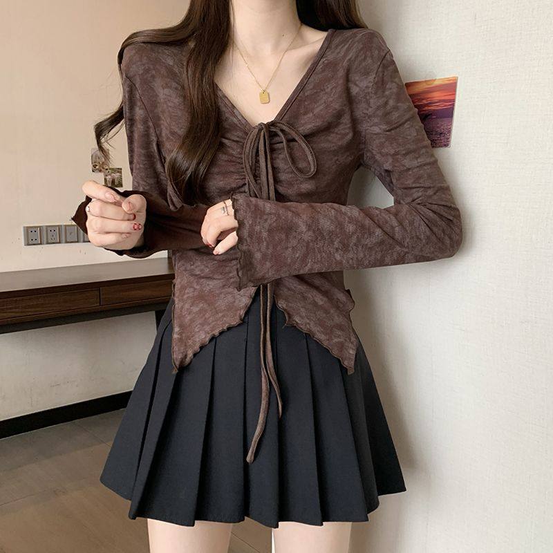 欧洲短剧只为占有你韩雨彤姜也同款长袖t恤v领喇叭袖上衣女衣服潮