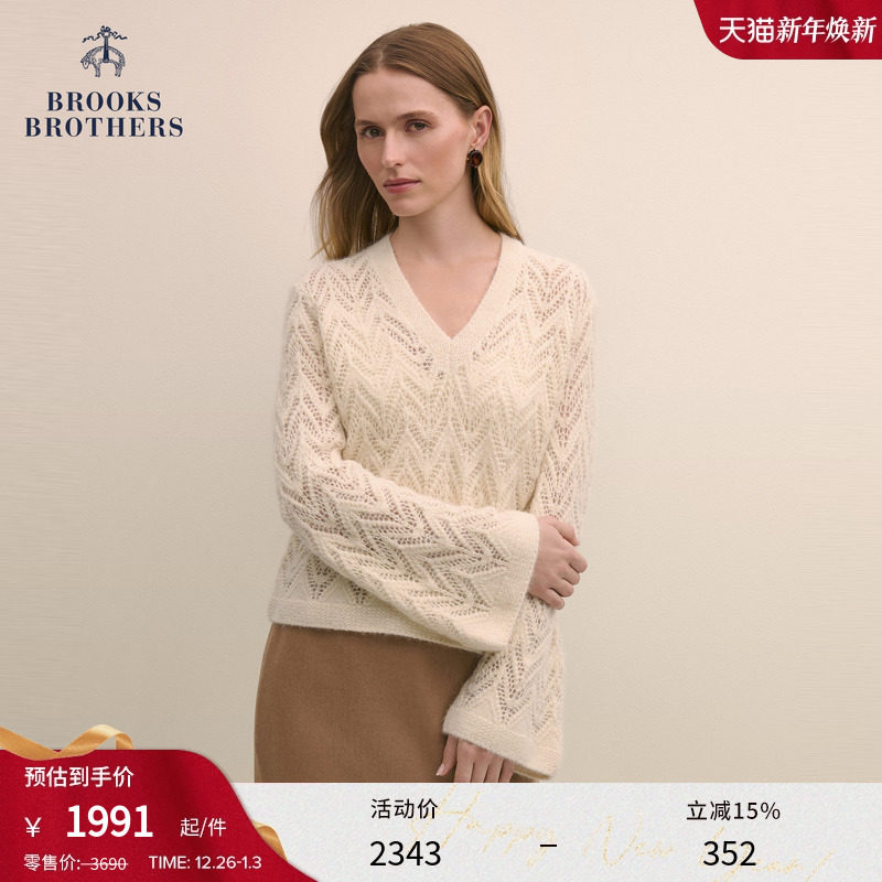 Brooks Brothers/布克兄弟女士25秋冬新品镂空针织V领喇叭袖上衣