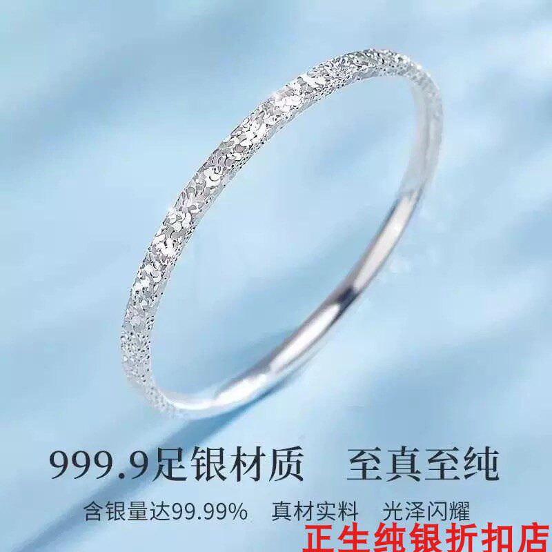 正生足银9999双环碎冰冰纯银手镯实心闭口银镯子送女友生日礼物
