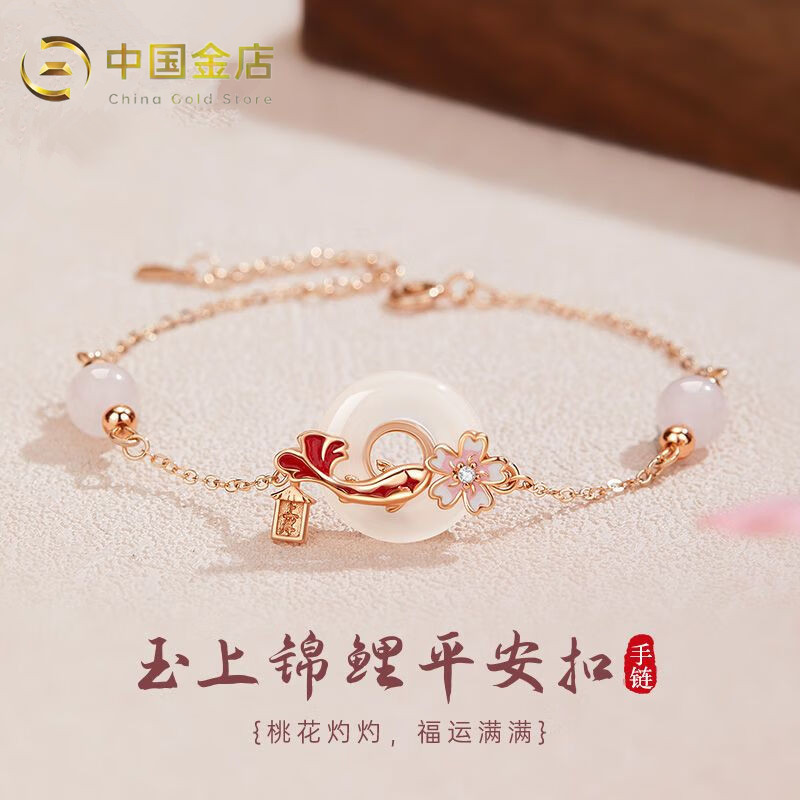 桃花平安扣银手链女款轻奢小众高级感生日礼物送女友妈妈闺蜜学生