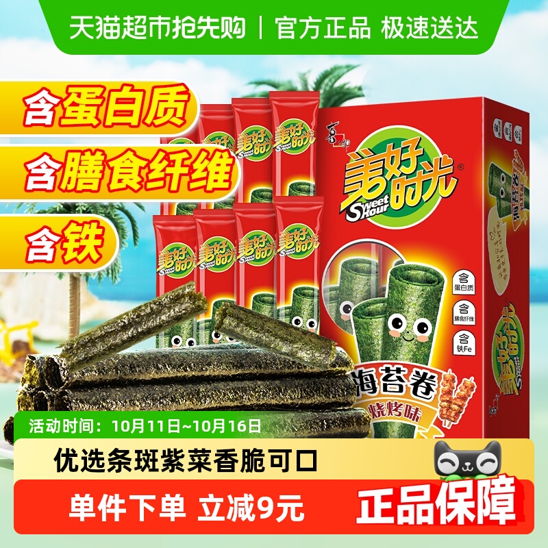喜之郎美好时光海苔卷烧烤味20.5g*1盒独立8支装即食紫菜休闲零食