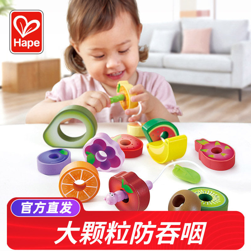 Hape贪吃虫水果穿珠子早教儿童益智玩具宝宝串珠积木穿绳线1-2岁