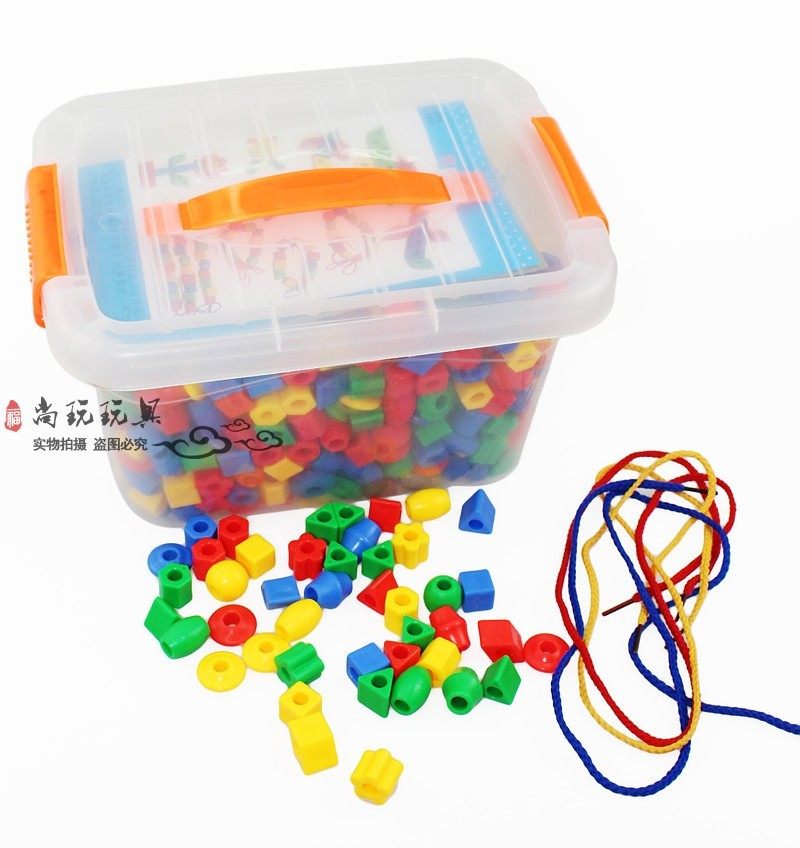 蒙氏早教宝宝串珠玩具益智穿珠子1-2-3周岁女孩儿童形状穿线积木