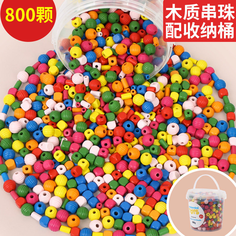 串珠儿童蒙氏早教益智玩具穿珠子精细动作训练宝宝大颗粒实木积木