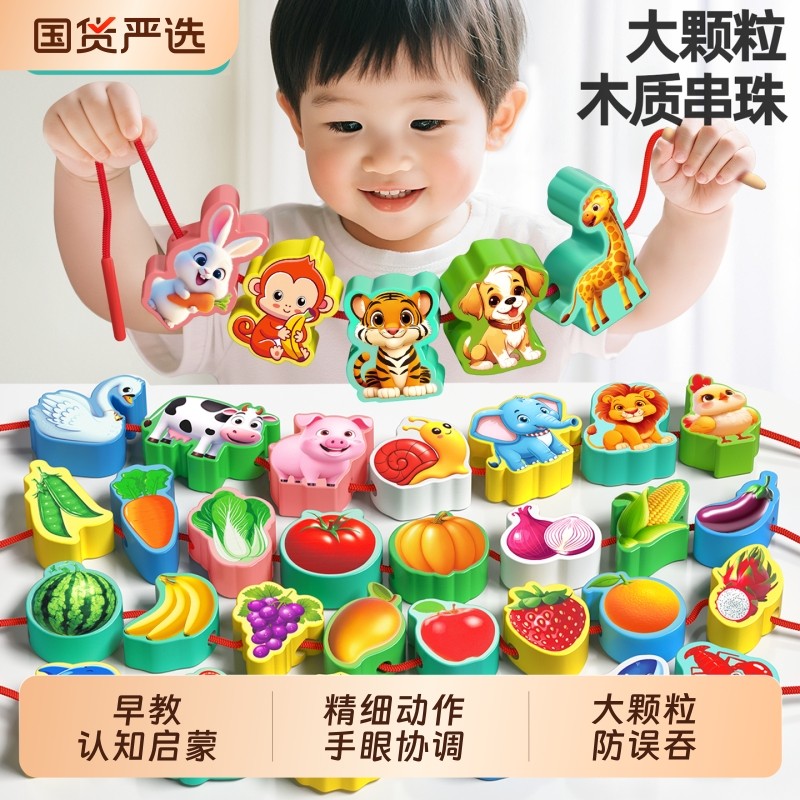 实木串珠儿童玩具大颗粒穿珠子训练宝宝蒙氏早教益智玩具教具积木