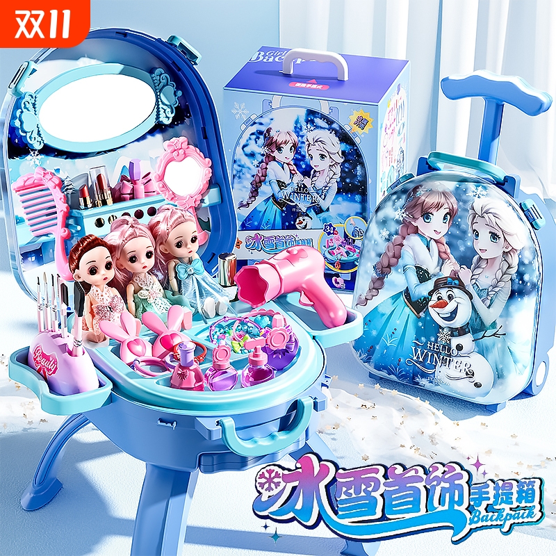 艾莎冰雪奇缘仿真化妆台行李箱玩具梳妆拉杆箱女孩过家家生日礼物