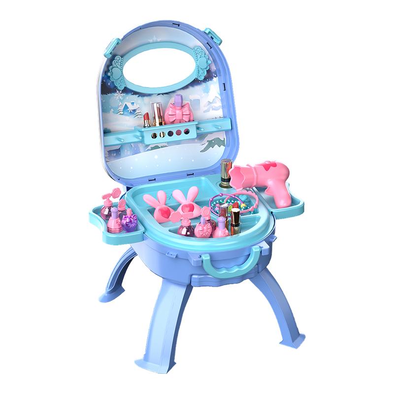 冰雪女孩梳妆台美妆手提箱儿童过家家玩具美发理发师吹风机礼物女