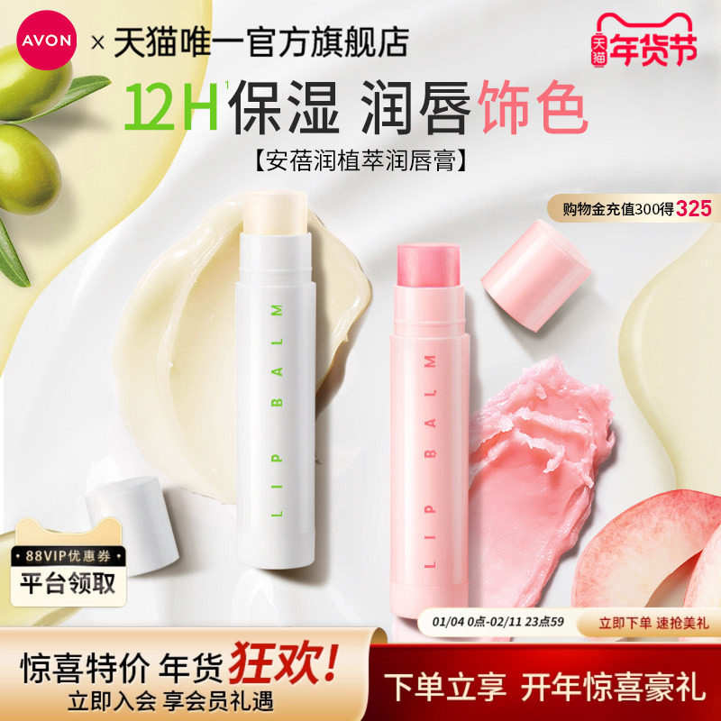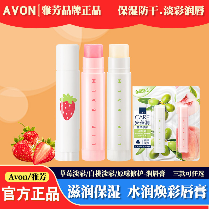 雅芳润唇膏草莓白桃淡彩原味修护无色秋冬保湿滋润嘴唇防干裂护唇