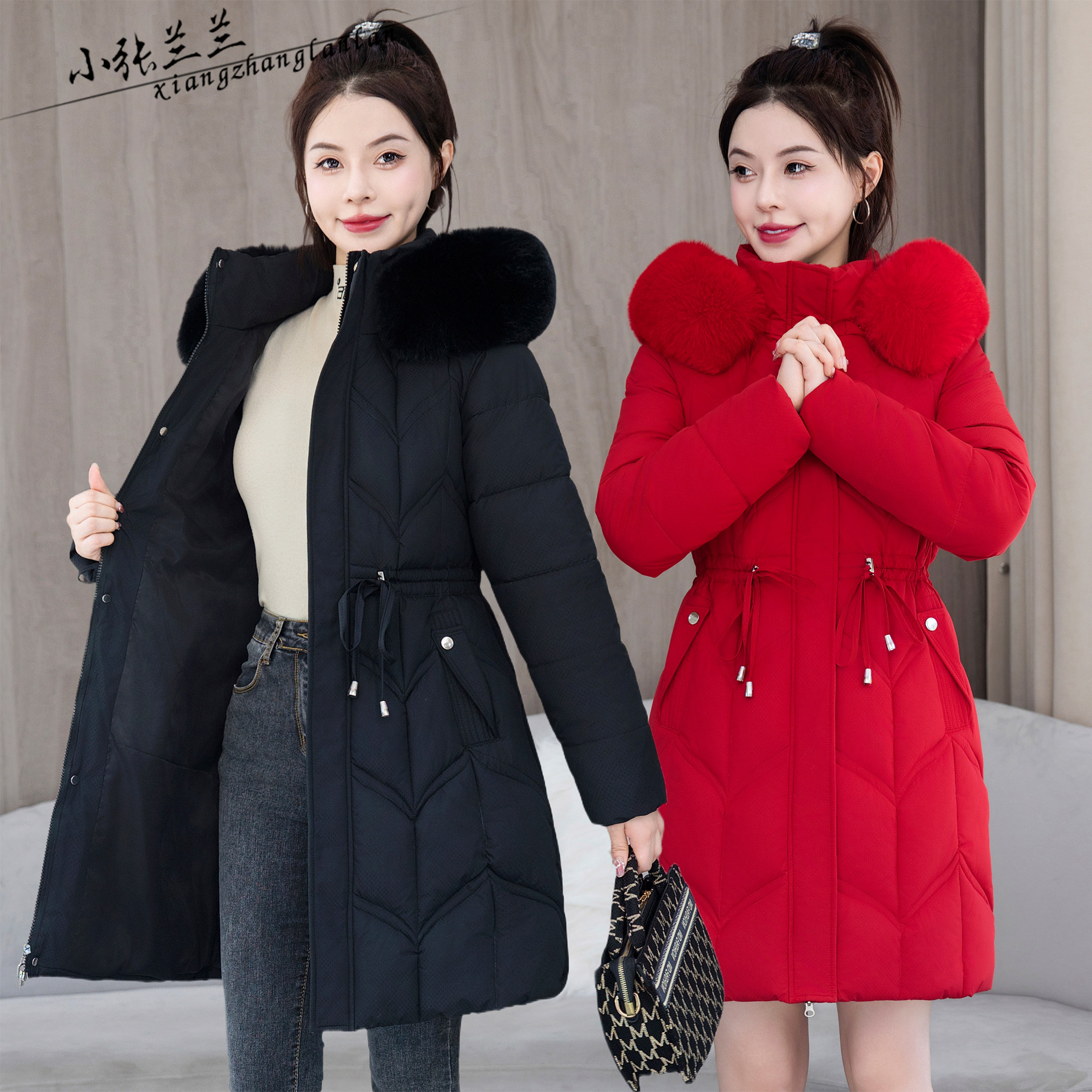 2026女款冬季大毛领连帽羽绒棉服中长款收腰显瘦羽绒棉服外套女