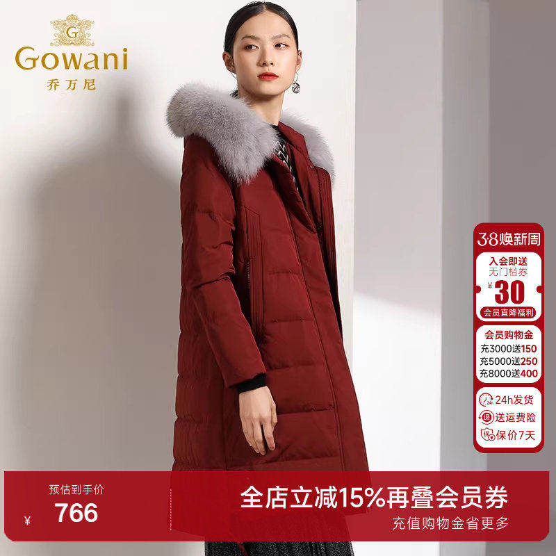 乔万尼冬季新款羽绒服中长款气质保暖大毛领外套显瘦女装EB4T160
