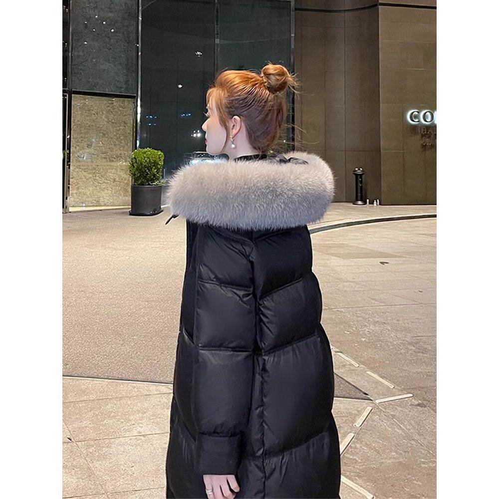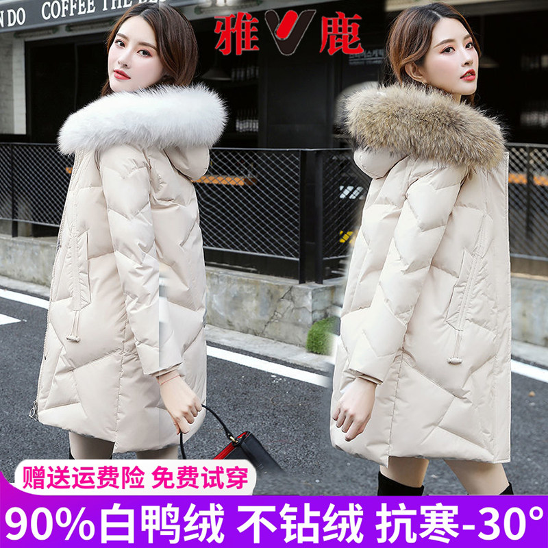 - 白鸭绒过膝羽绒服女