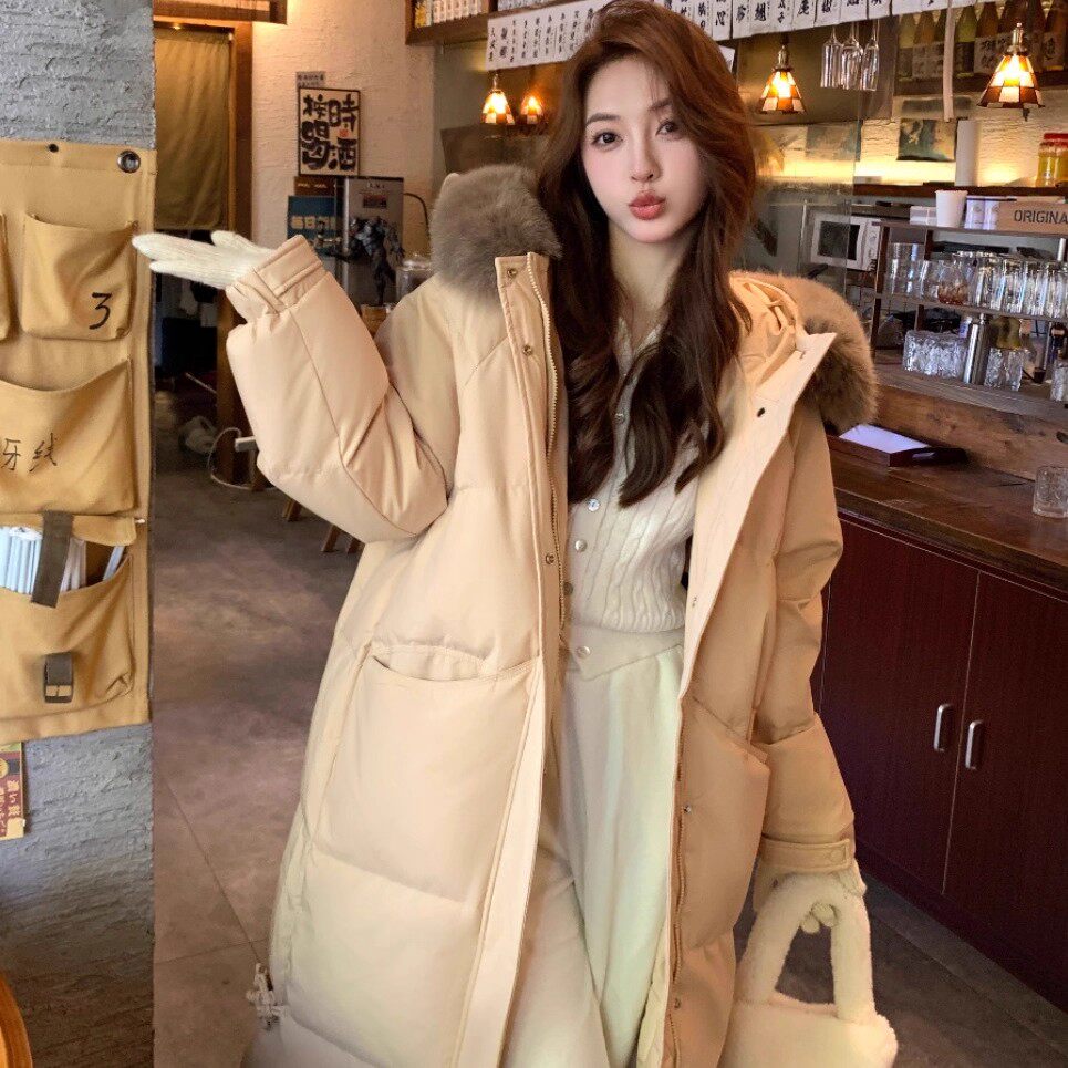 - 明星同款羽绒服女中长款