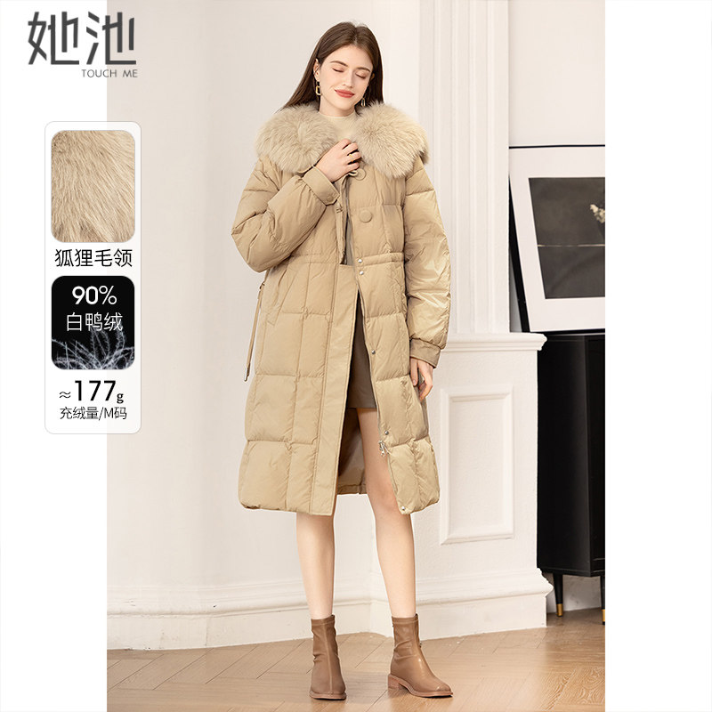 90白鸭绒狐狸毛大毛领收腰显瘦中长款羽绒服女冬季保暖白鸭绒外套