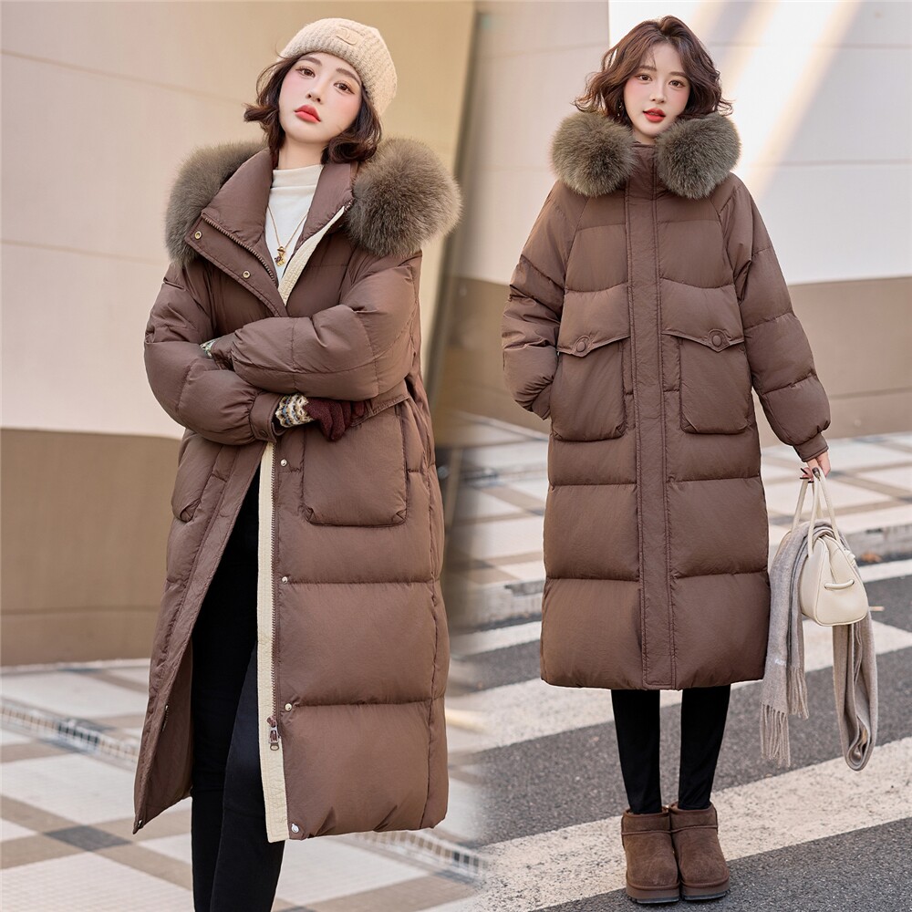 2025新款显瘦名媛宽松时尚保暖大毛领加厚羽绒服中长外套女爆款