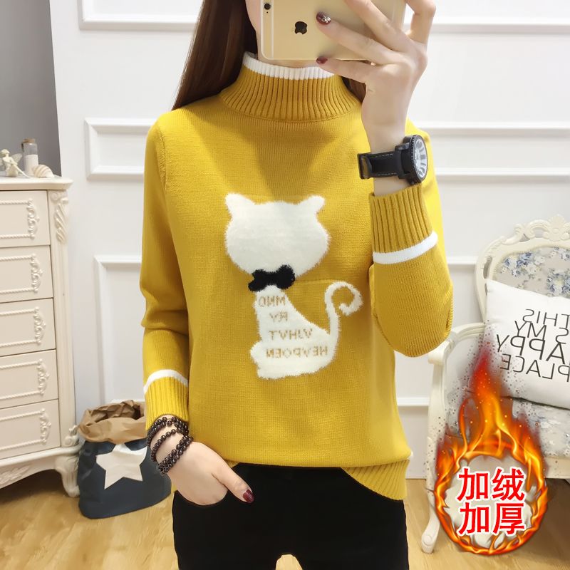 半高领可爱毛衣女套头秋冬初高中学生少女韩版甜美加绒加厚打底衫