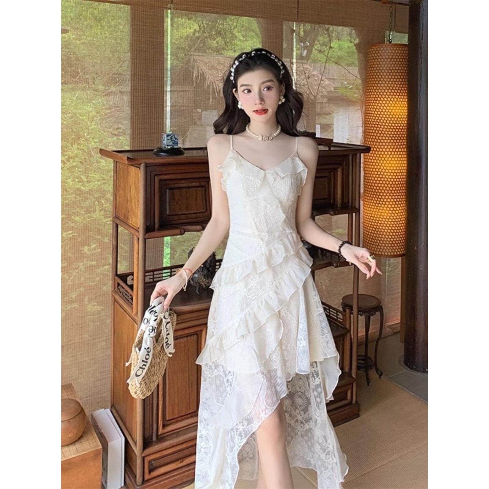 俄罗斯法式美女吊带连衣裙,温柔的风格,性感苗条的度假沙滩连衣