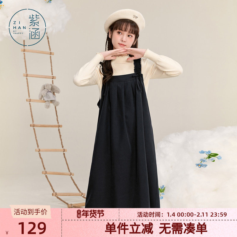 紫涵木耳宽边吊带连衣裙女冬季新款甜美宽松百搭叠穿中长款a字裙