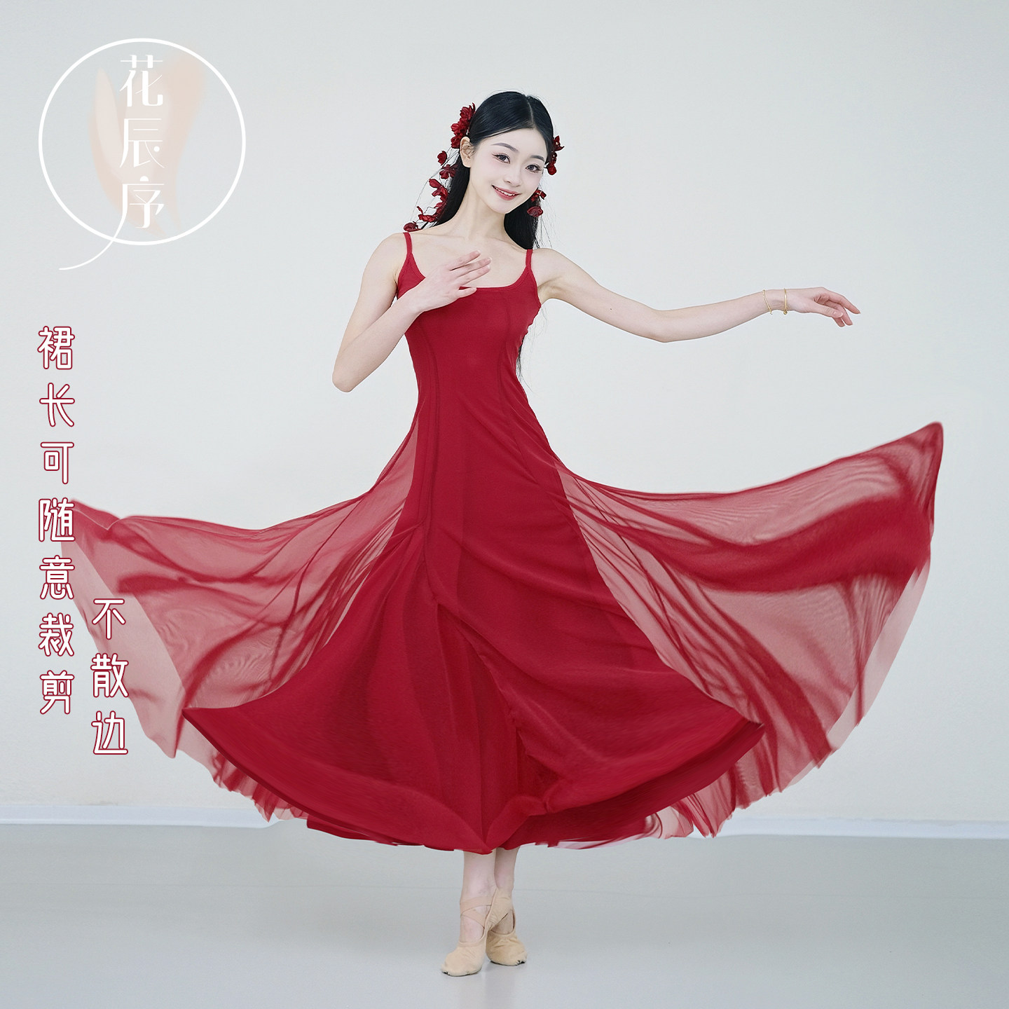 花辰序红色古典舞蹈服女吊带连衣裙长裙大摆飘逸演出服艺考练功服