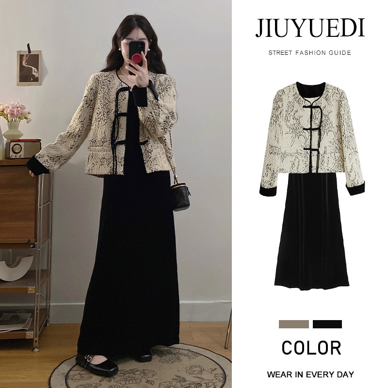 JIUYUEDI九月底新中式小香风短外套女吊带连衣裙女冬季新款套装