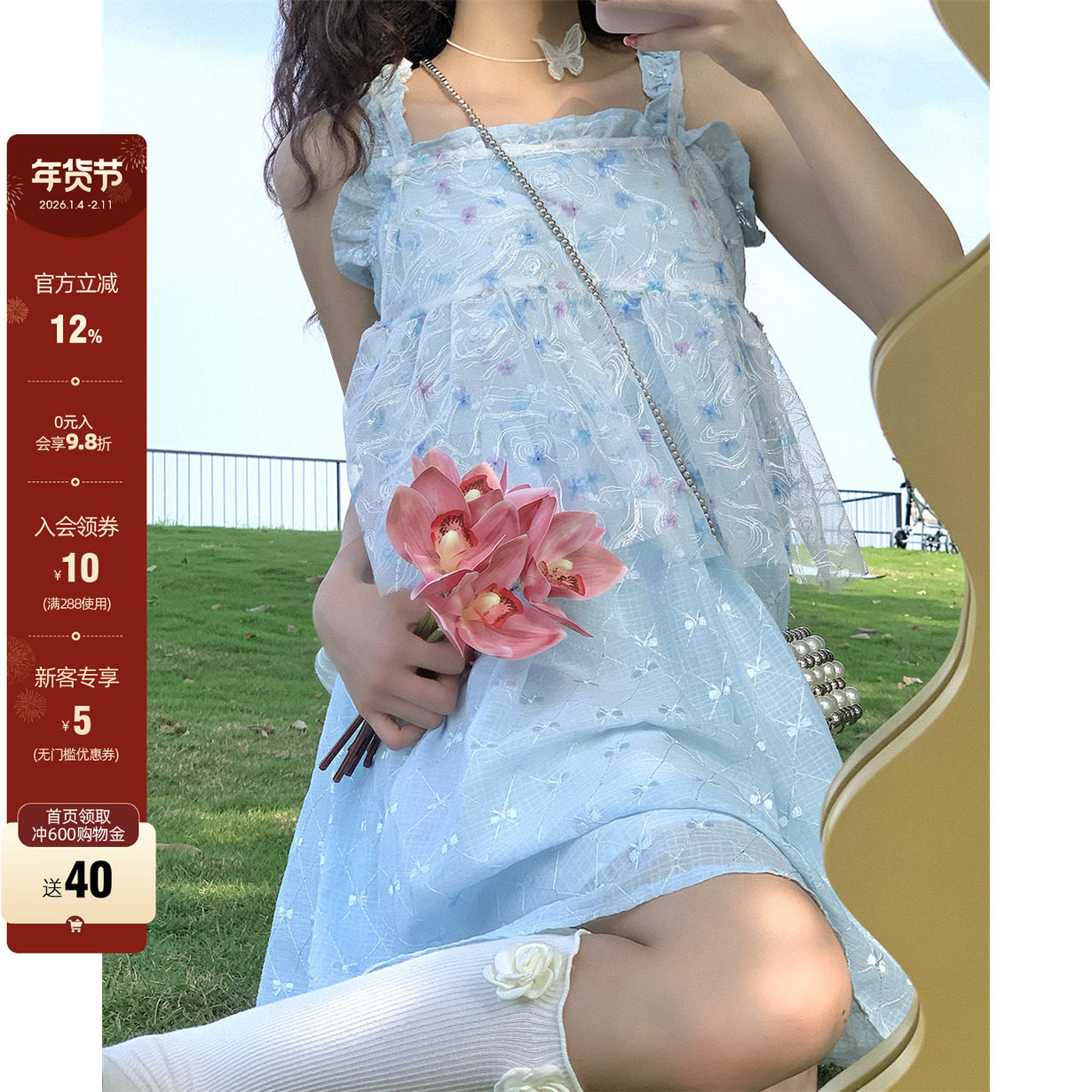 梦箱子2023春新款甜美蕾丝花边棉布裙女小清新刺绣森女吊带连衣裙