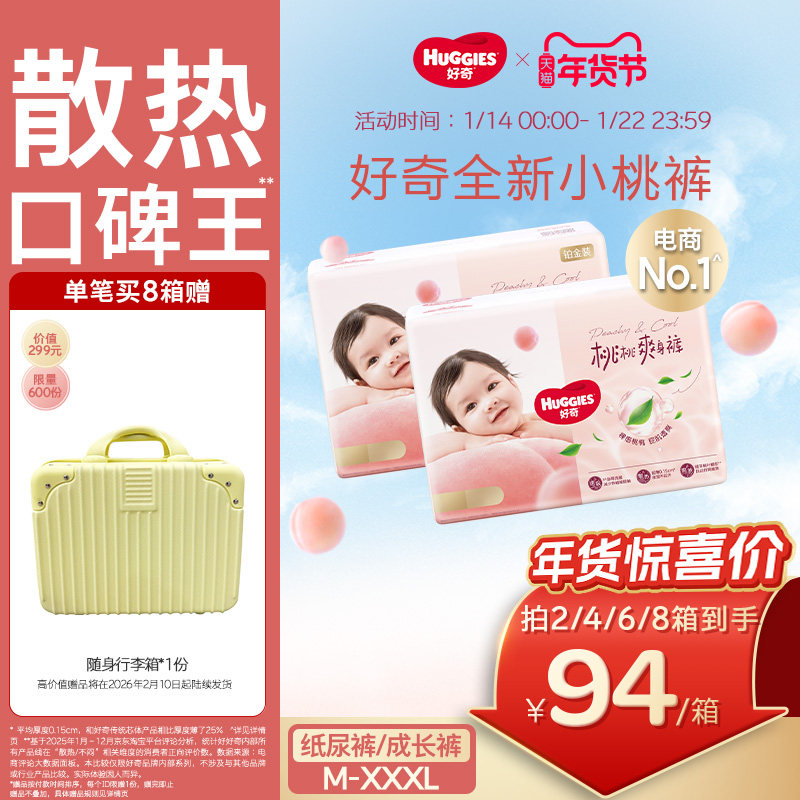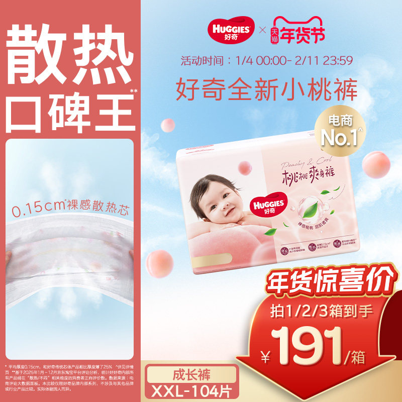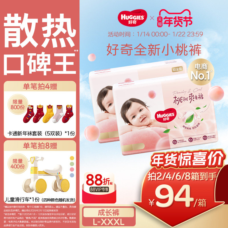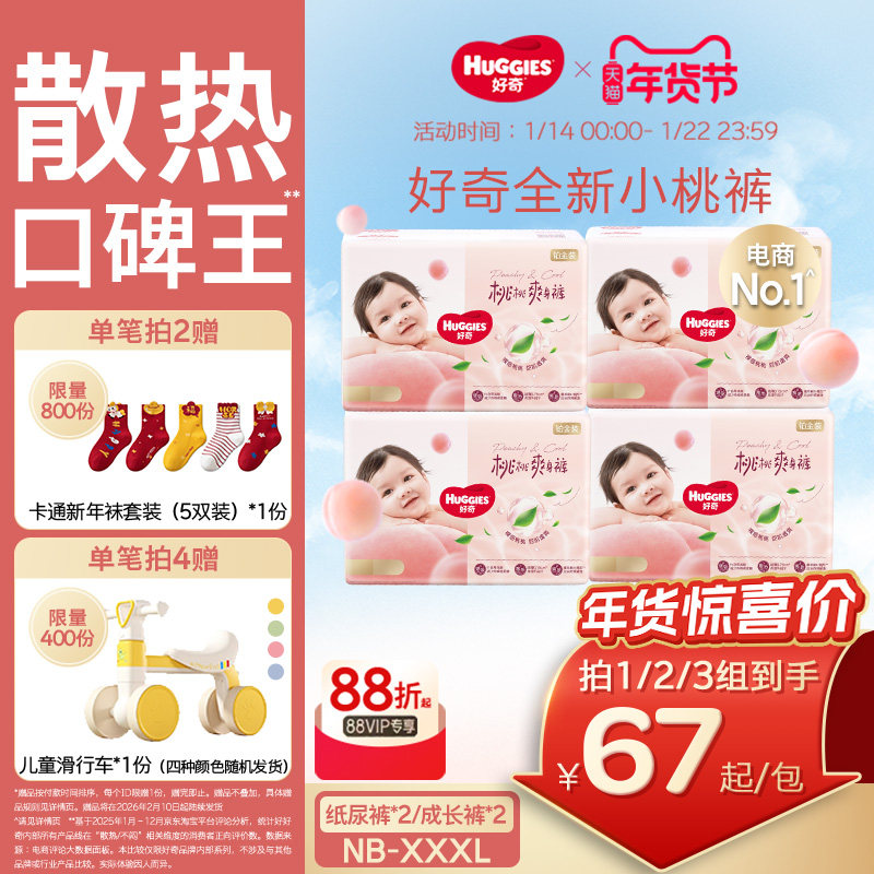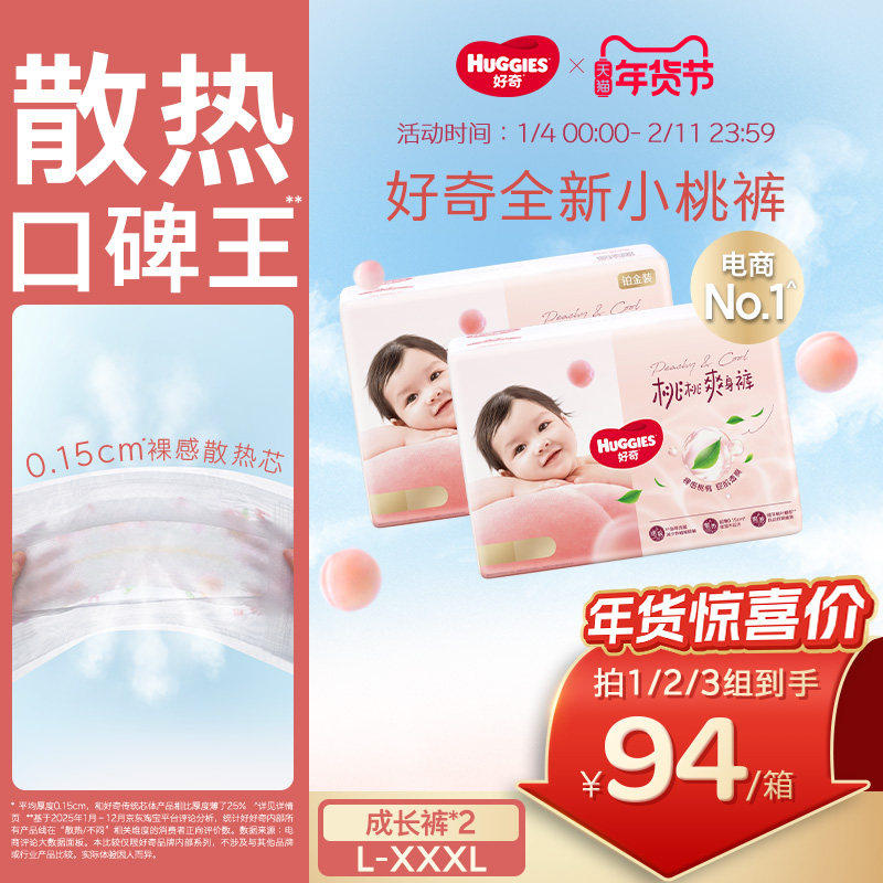 【爆款装】好奇铂金小桃裤纸尿裤S-XL拉拉裤XL-3XL超薄透气尿不湿