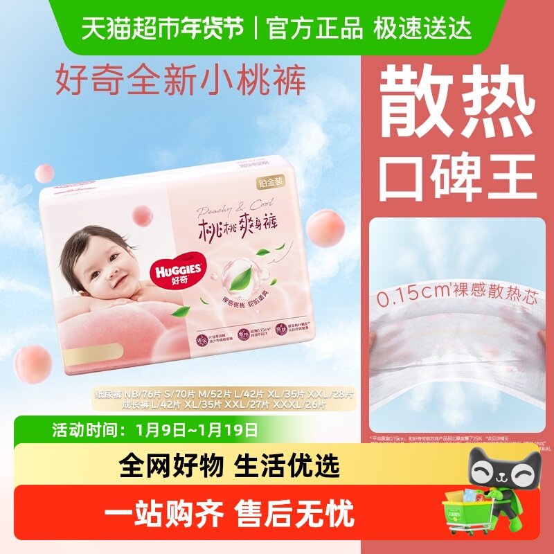 【透爽散热】好奇铂金装小桃裤纸尿裤NB-XXL拉拉裤L-3XL尿不湿