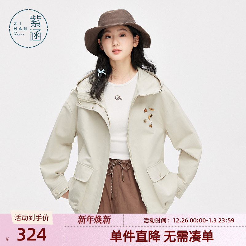 IHIMI海谧秋季连帽短款风衣女士2025春秋新款宽松今年流行外套女