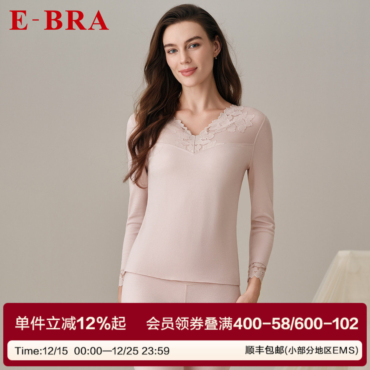 安莉芳旗下E-BRA2025年新款打底衫女V领蕾丝透气舒适秋衣打底上衣