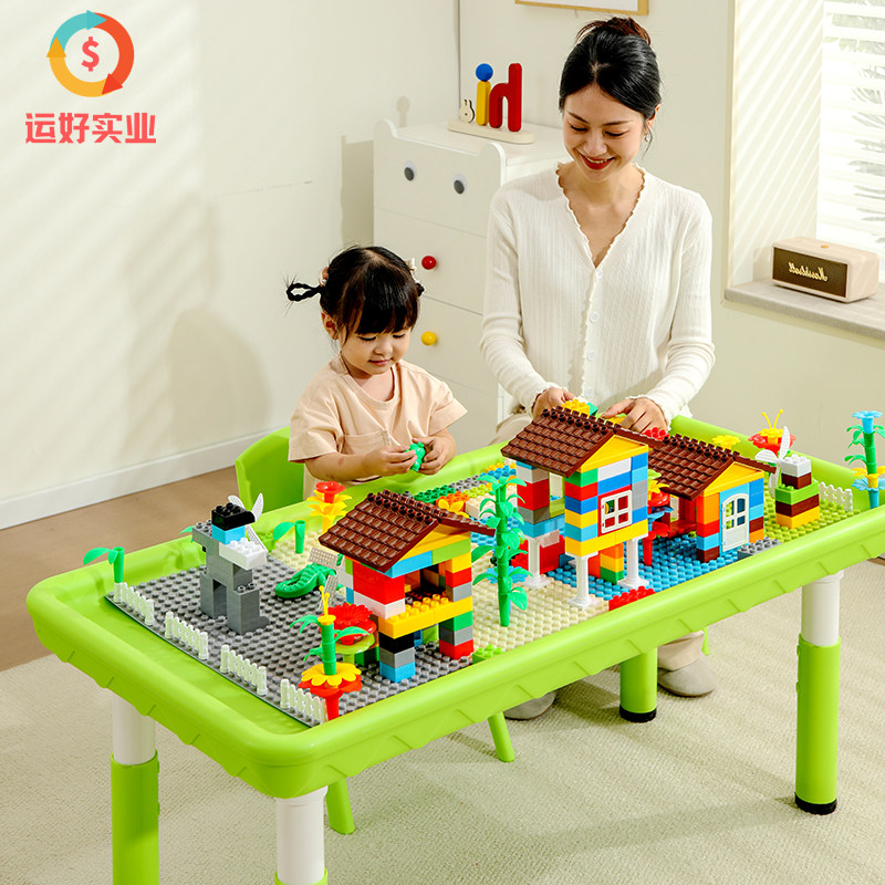 儿童长方形积木桌宝宝塑料玩具桌椅幼儿园沙水盘游戏桌太空泥沙桌