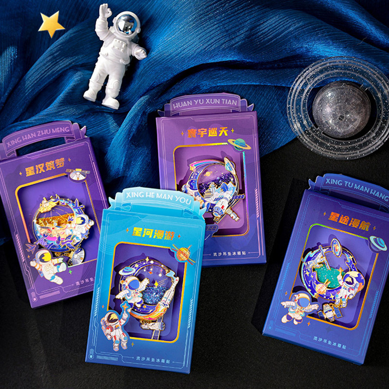 中国航天员太空宇航员航展金属流沙冰箱贴航空馆纪念品儿童节礼物