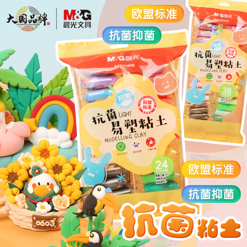 晨光抗菌超轻粘土补充装12色24色36色儿童橡皮泥太空水晶彩泥批发男女孩手工手办diy材料大包黏土沙玩具套装