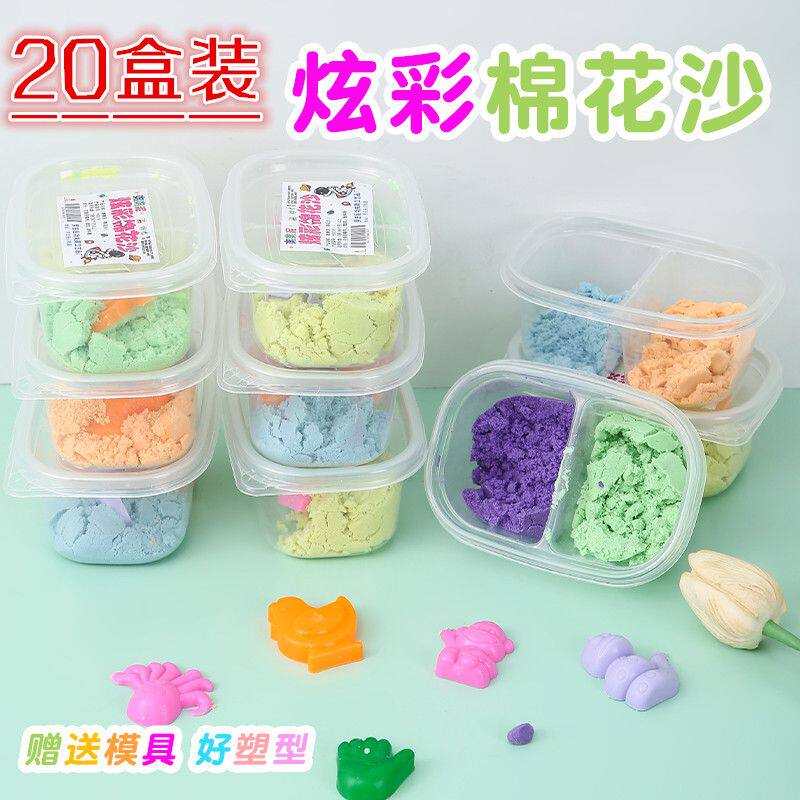 儿童玩具太空沙双色盒装棉花沙太空沙批发手工DIY盒装摆地摊玩具