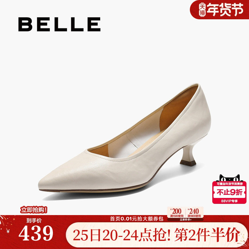 百丽女鞋子细高跟单鞋新款真皮通勤不累脚浅口单鞋BFH01CQ5