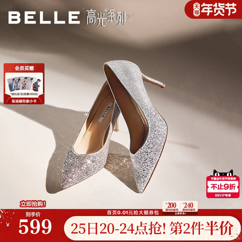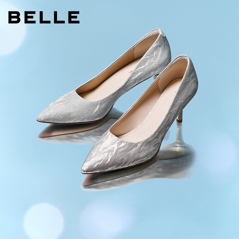 百丽细闪优雅单鞋女春季新款商场同款宴会婚鞋浅口高跟鞋L8015CQ5