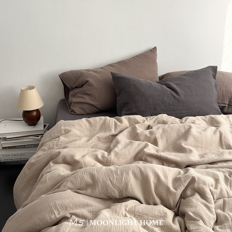 柔软皱皱纱双层纱纯色简约全棉四件套纯棉床单被套床笠床品三件套
