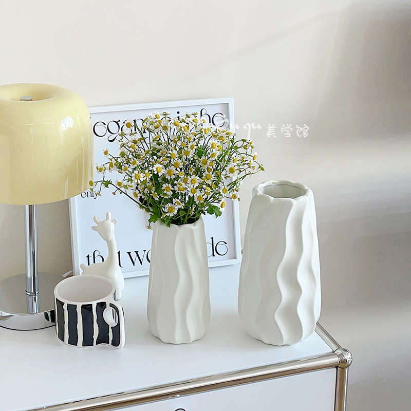 现代简约花瓶摆件客厅水养鲜花插花高级感陶瓷白色干花餐桌装饰品