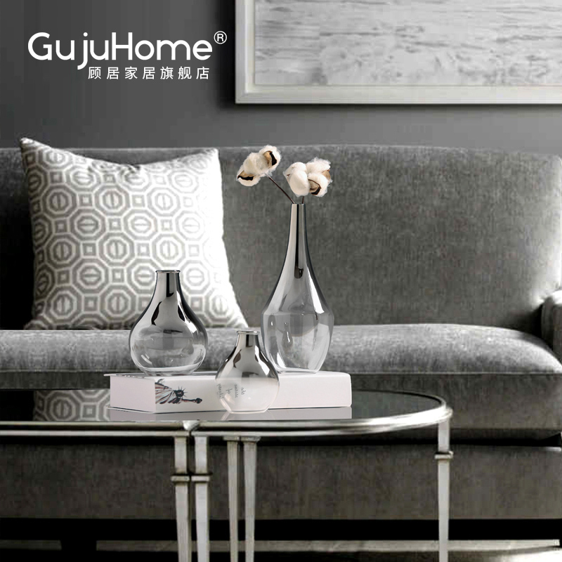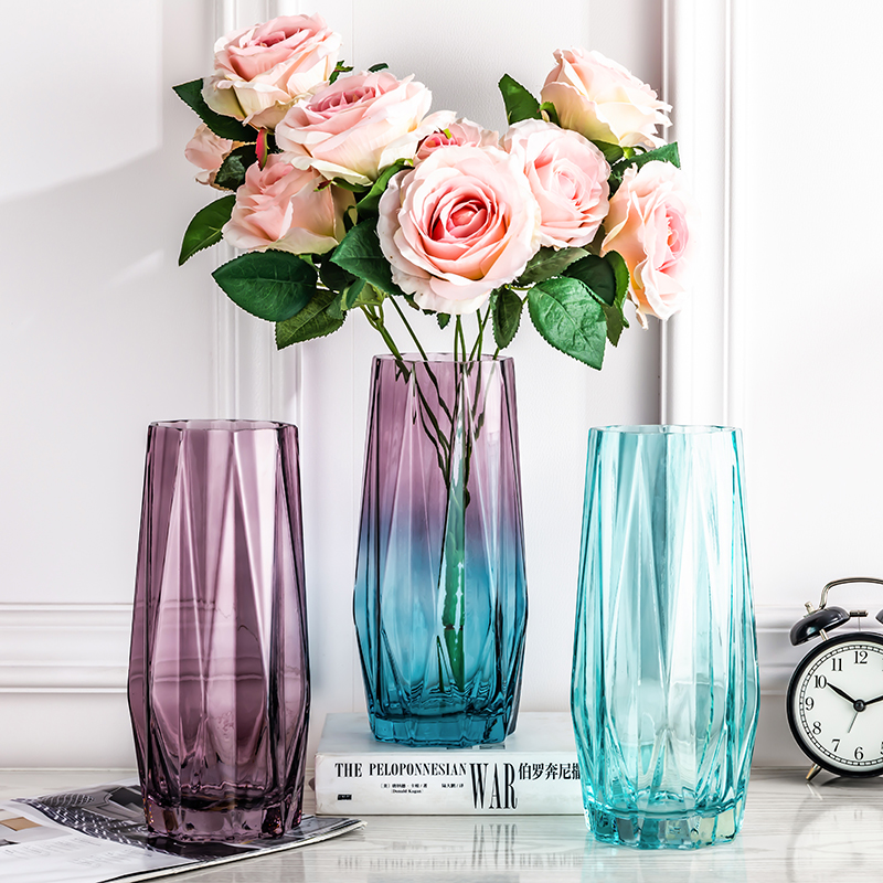 现代简约花瓶摆件玻璃电镀渐变小花器家居客厅餐厅电视柜干花花插
