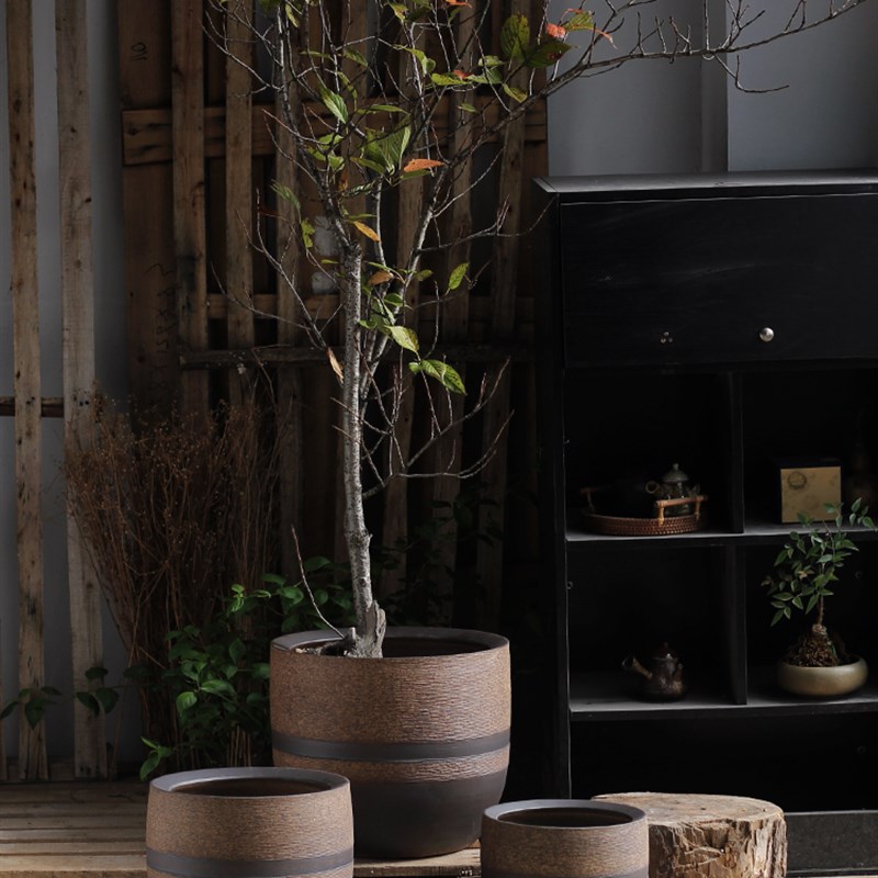 北欧花盆现代简约花瓶客厅落x地植物装饰缸复古陶瓷水培陶罐大口