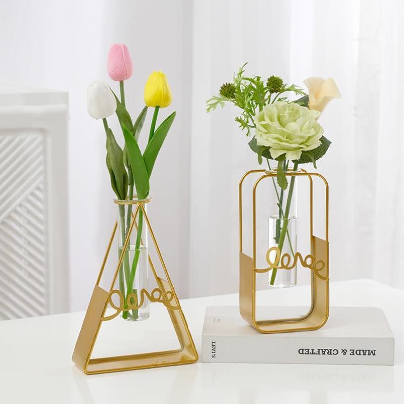 现代简约花瓶摆件轻奢家居客厅卧室餐厅摆设金属装饰试管水培花瓶
