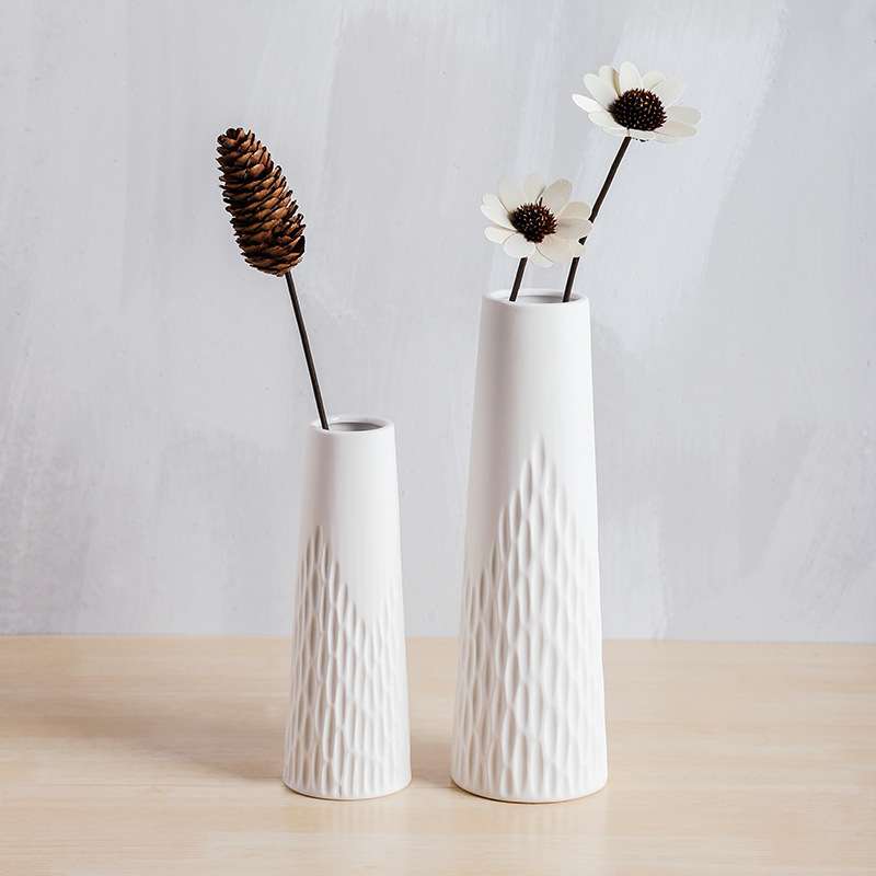 现代简约花瓶摆件餐桌装饰插花白色创意花器陶瓷干花客厅家居水培