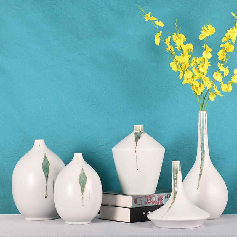 窑变陶瓷一点绿小口现代简约花瓶家居装饰酒店宾馆工艺品摆件花器